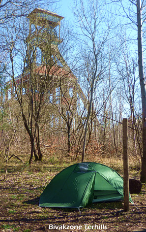 Je bent hier op Bivakzone Terhills te gast vlakbij de hoofdingang van het Nationaal Park Hoge Kempen. Deze locatie ligt niet diep verstopt in de uitgestrekte bossen van het nationaal park. Je hebt de kans om in het nationaal park te bivakkeren in de schaduw van historische monumenten: de twee schachtbokken van de voormalige steenkoolmijn van Eisden.