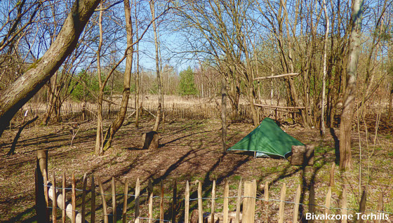 Voor wie graag onder een tarp of in een hangmat (hammock) overnacht, zijn er stevige palen voorzien, dit waren de eerste bivakzones in Vlaanderen die hiermee zijn uitgerust. Voor sommige types hangmatten kan het zijn dat de palen niet ver genoeg uit elkaar staan.