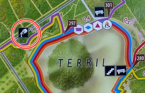 Kom je uit noordoostelijke richting aangestapt over het National Park Trail, verlaat dan de NP Trail bij het naderen van een eerste terril van Thorpark ter hoogte van wandelwissel 280. Volg daar naar rechts de rode driehoek of blauwe ruit, passeer wandelwissel 301 en pas bij wandelwissel 297 kies je naar rechts voor het traject dat enkel is gemarkeerd met een paars trapezium-teken.