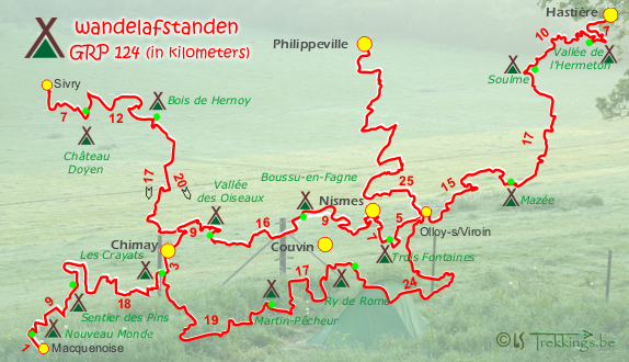 Hoofdroute GRP 124 Macquenoise - Chimay - Virelles - Nismes - Olloy - Hastière |